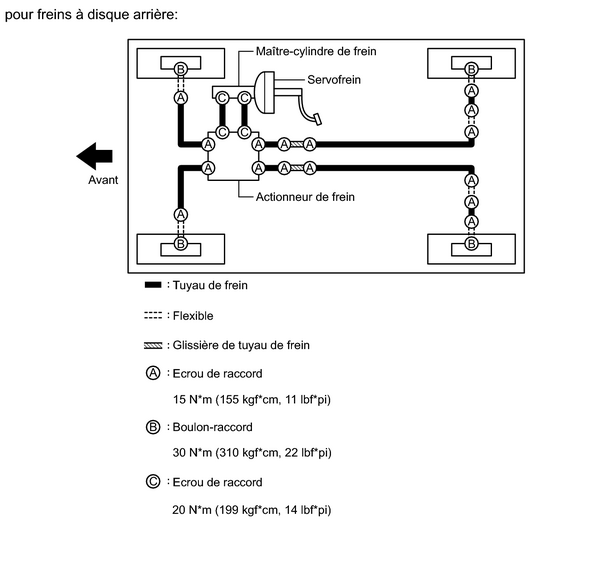 • Ne pas endommager ni déformer les canalisations de frein lors de leur dépose ou repose.